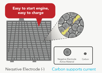 Optimizing the usage of carbon as an active material in the negative electrode enhances electricity flows
