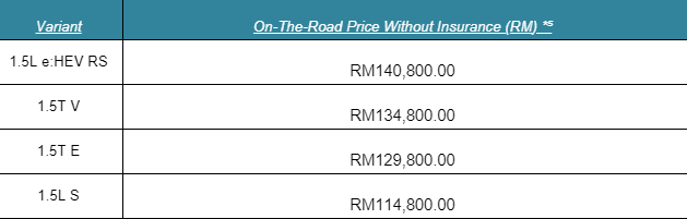 The All-New HR-V price as follows: