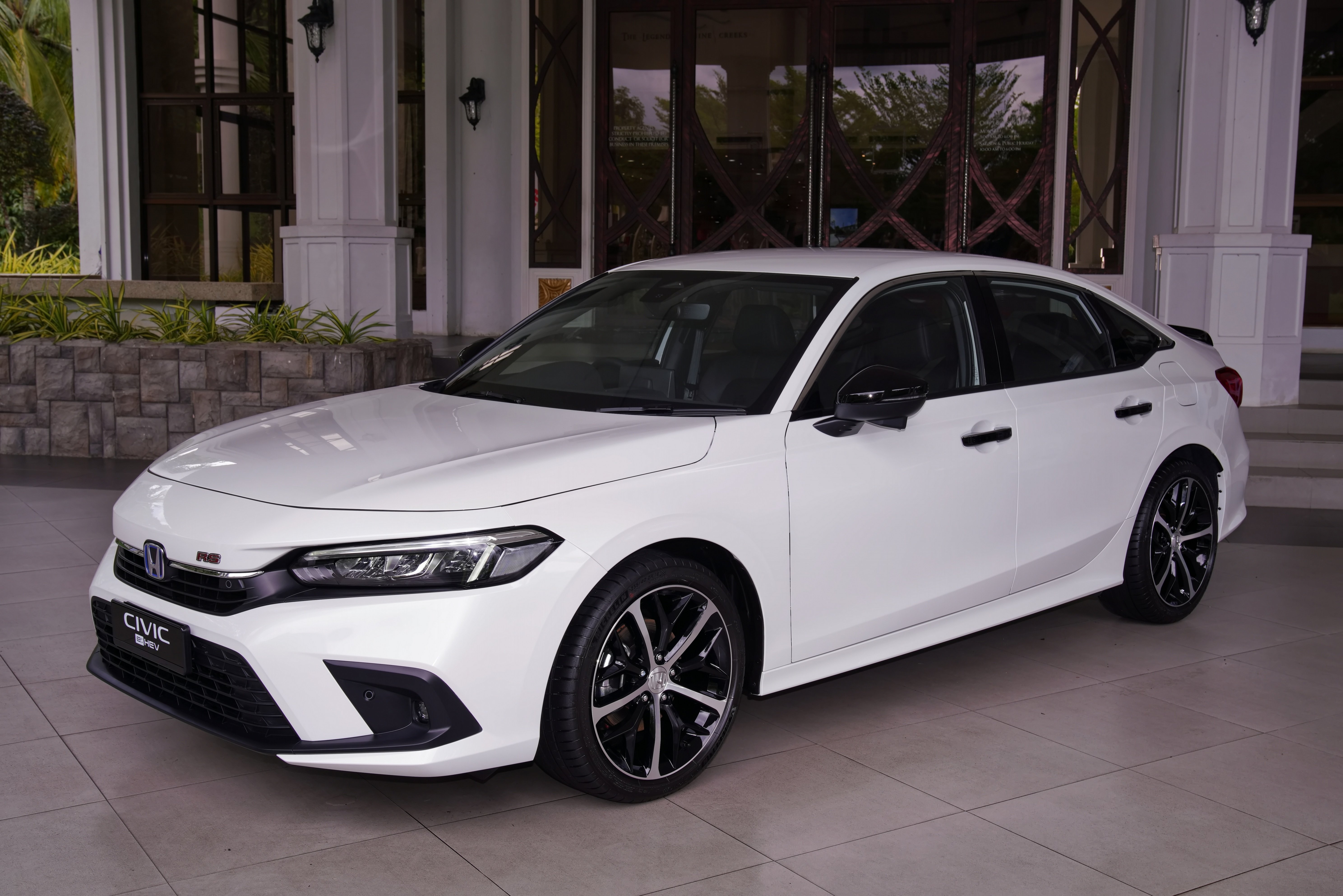 The Civic e:HEV RS is also available in Platinum White Pearl.