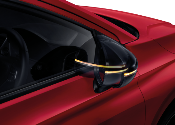 Sharply styled door mirrors keep your surroundings in clear view.