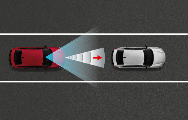 Audio and visual warnings are triggered when there’s an increasing risk of collision.
