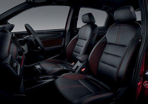 Trendy interior that comes with detailed red stitching for a stylish ride.