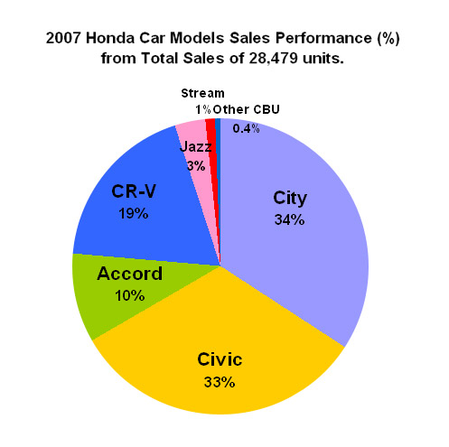 Honda Malaysia attributed the good performance to the all-new CR-V; the 8th Gen Civic with value added features and the City enhanced model, which all met their individual targets for 2007. These top-selling models were part of the total of eight Honda new cars and special models that were introduced last year, including the Accord VTi-S, special variant; Civic Type R and Hybrid; Jazz in a new striking colour; and the all new Stream.