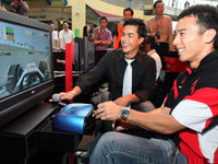 At the party, the Honda Racing F1 Team members shared their experience and features of the new RA108 with guests and media. Honda's customers and media had fun when they were invited to challenge the F1 drivers at the F1 simulator.