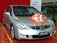 Melaka, 6 November, 2007 - Honda Malaysia Sdn. Bhd. yesterday celebrated the production of its 100,000th car within just five years of operations at the Pegoh Plant in Alor Gajah. This important milestone in the history of Honda Malaysia was celebrated in a simple yet joyous ceremony as the 100,000th car, a 8th Gen Civic rolled out.