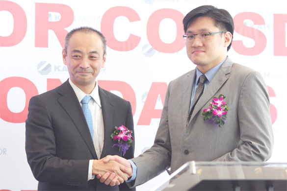 Oriental Holdings Bhd Deputy Chairman Dato Loh Kian Chong shaking hands with Honda Malaysia MD and CEO Mr. Yoichiro Ueno